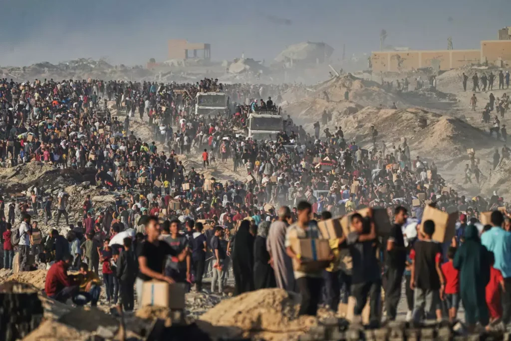 (zum Beitragsbild oben: Palästinenser steigen in Beit Lahia im nördlichen Gazastreifen auf ein Fahrzeug, als sie sich sammeln, um Hilfsgüter zu erhalten, 23. Juni 2025 (Foto: Reuters/Ebrahim Hajjaj))