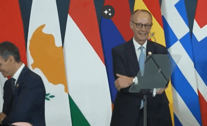 Während sich die UN-Trampolinspringerin einfach mündlich zur wichtigsten Friedenstifterin im Nahost-Konflikt erklärte, wollte Merz in Sharm-El-Sheik ganz vorne mit dabei sein, wenn der der von Trump in die Wege geleitete Waffenstillstand in Gaza und die Freilassung der Geiseln gefeiert werden.