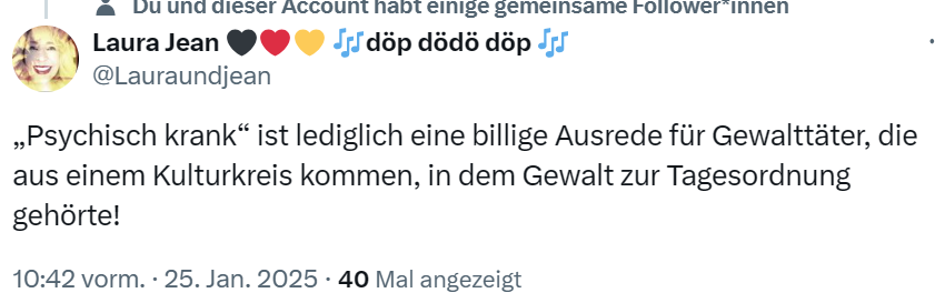 Warum vermeidet man es weiterhin, endlich mal zu thematisieren oder wenigstens zu hinterfragen, ob nicht vielleicht die Herkunft dieser Messermörder, die Konditionierung in einer tribalistischen Gesellschaft, bei der (Messer- und Macheten-)Gewalt an der Tagesordnung sind eine Rolle dabei spielen, warum sie wurden was sie sind? Und dass eine Gesellschaft, in der schon kleinste Kinder gewaltverherrlichend aufwachsen und durch ein radikal-religiös-fundamentalistisches Umfeld in ihren Herzen vergiftet werden!? Aus diesen Kindern werden gewalttätige Erwachsene, die das, was sie in ihren Herkunftsländern „lernten“ mit zu uns bringen und hier weiter ausleben.
