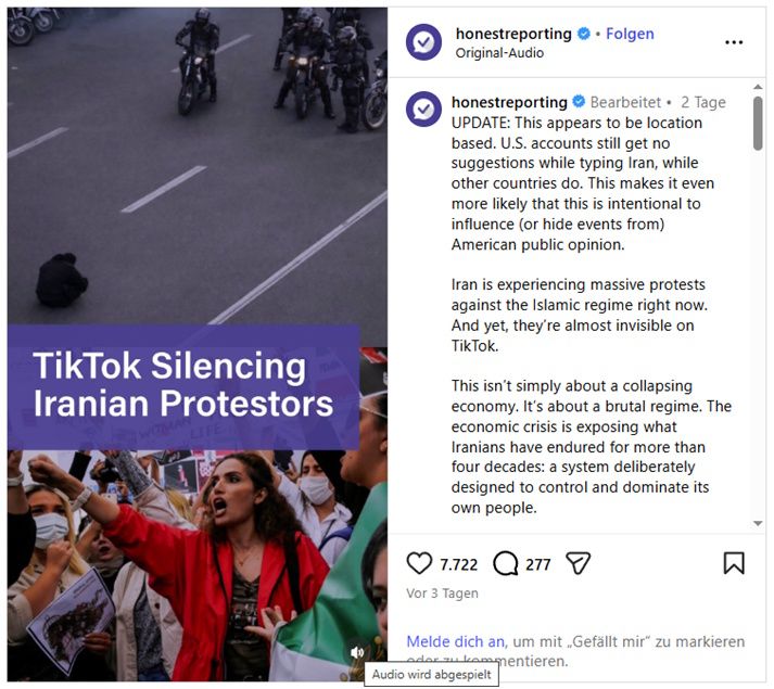 Sky News, Reuters, FRANCE24 und andere [darunter auch die deutschen ÖRR-Sender] folgten einem ähnlichen Muster – sie stellten steigende Preise und wirtschaftliche Stagnation in den Vordergrund, während sie den unüberhörbar politischen Parolen, die durch die Straßen Irans hallten, nur geringe Aufmerksamkeit schenkten.