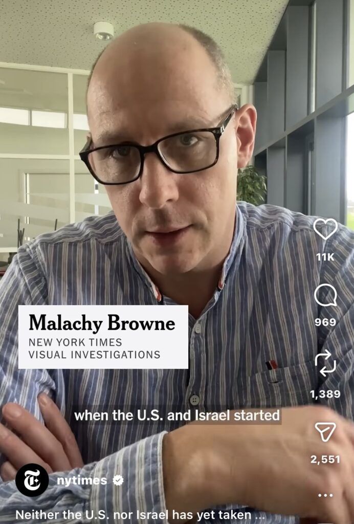 Eine Szene konstruieren: Malachy Browne vom Visual Investigations Team der New York Times präsentiert eine Analyse des „Angriffs auf die iranische Schule“. Das unterstreicht die Kernthese der Serie: Wenn direkte Beweise nicht verfügbar sind, greift der Journalismus zunehmend auf Fernanalysen zurück, um ein Narrativ von „Gewissheit“ zu konstruieren, das nicht unabhängig überprüft wurde.