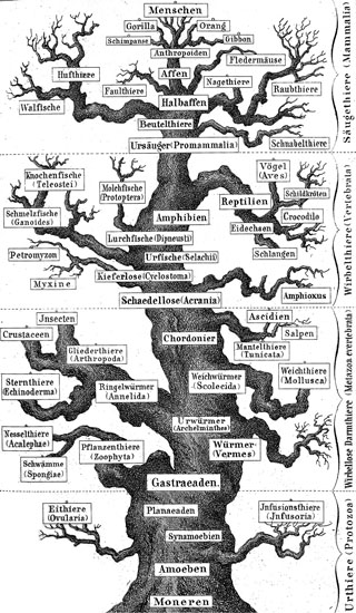 (Quelle Beitragsbild oben: Darwins Baum des Lebens mit der angeblichen Urform
