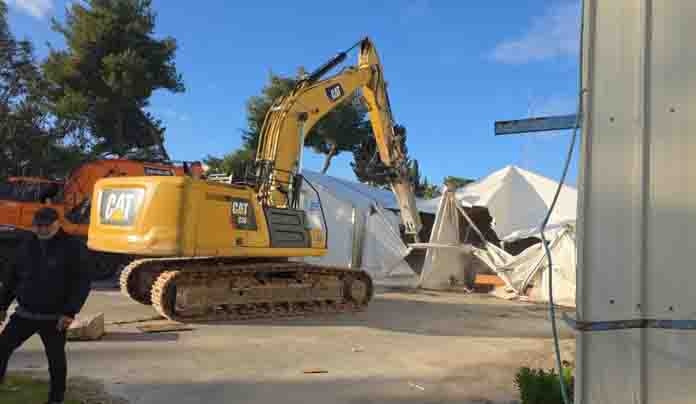 Kräfte der israelischen Behörden haben mit der Demontage und Räumung des früheren UNRWA-Standorts nahe Ammunition Hill begonnen. Der Komplex war seit mindestens einem Jahr ungenutzt.